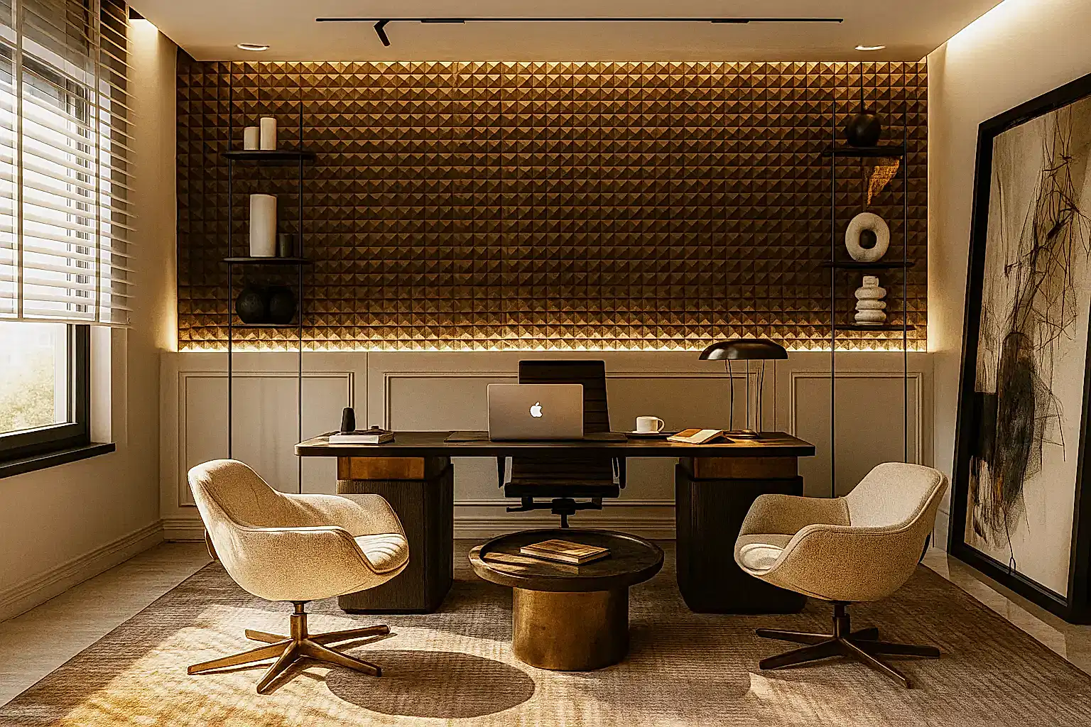 İş ve verimlilik için ergonomik ofis. Estetik ve fonksiyon bir arada.